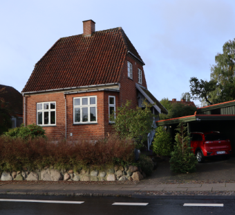 Tim og Ingelise bor i et velisoleret murmesterhus fra 1932 på 95 m² – det er lidt over bæredygtighedsgrænsen på 40 m² pr person, hvilket (desværre) giver lidt ekstra CO2-udledning. Huset har nyere vinduer, hulmursisolering og en lille rørsolfanger til opvarmning af brugsvand mod syd. Opvarmning sker med gas, hvilke ikke er optimalt, men der suppleres med brændeovn og el. Regnvand ledes til tønde, havedam og faskiner.